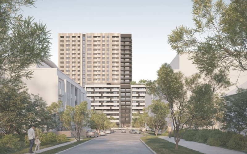 The $158-million state-significant project by Omaya would overlook the T9 heavy rail train line and station, and incorporate four retail, two commercial and one childcare tenancies as part of the mixed-use development.