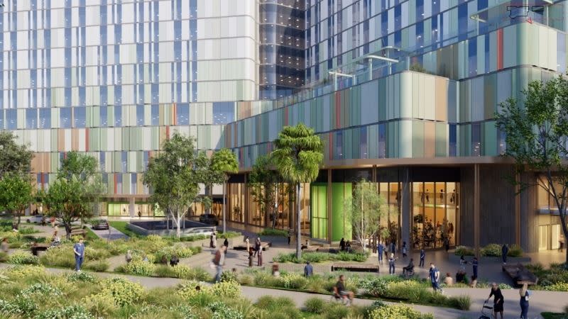 Stage 1—on exhibition until May 7—would include the main hospital, a logistics hub within the parking structure, internal roads, signage, landscaping and a new public plaza.