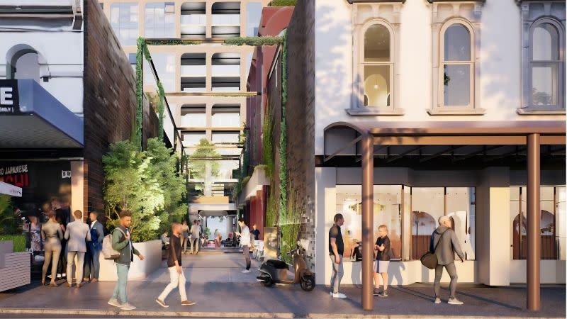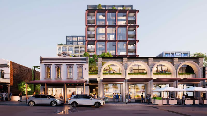 The development would replace low-rise commercial buildings but retain part of a heritage-listed Victorian shopfront while a recessed upper-level form would minimise visual impact on the streetscape.