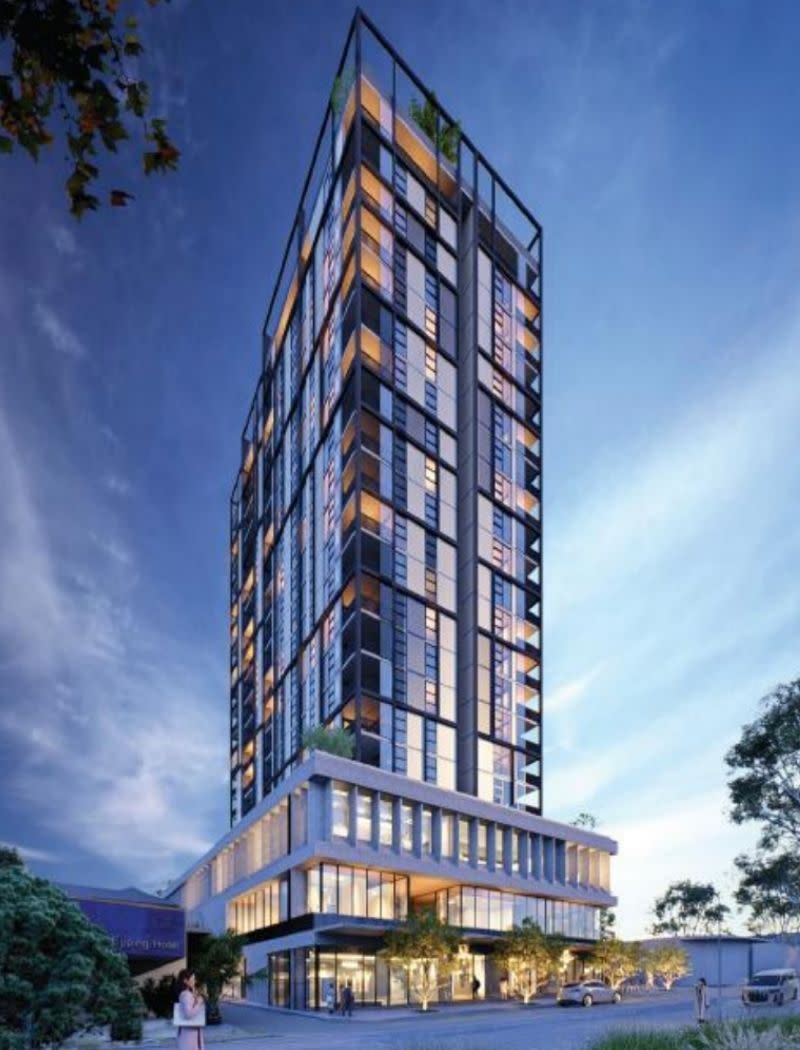 Initial plans filed in 2018 proposed a 21-storey tower delivering about 130 apartments above a three-storey podium containing retail and commercial tenancies.