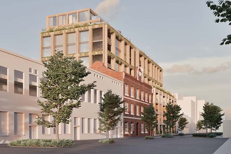 According to the urban context report, its “Heritage as Hero” approach would retain and restore the original shirt factory frontage, building behind and above the heritage building.