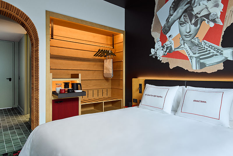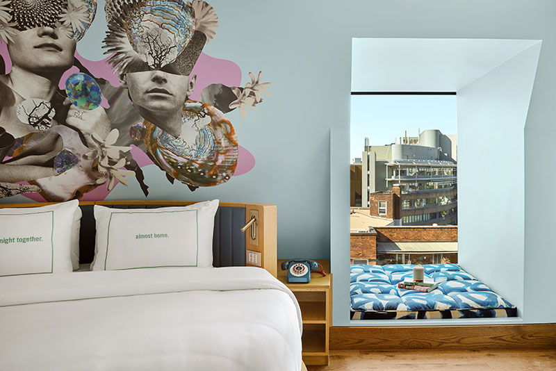 Standardised room typologies (pictured above) are replaced by distinct personalities, allowing guests to choose how they engage with the space.