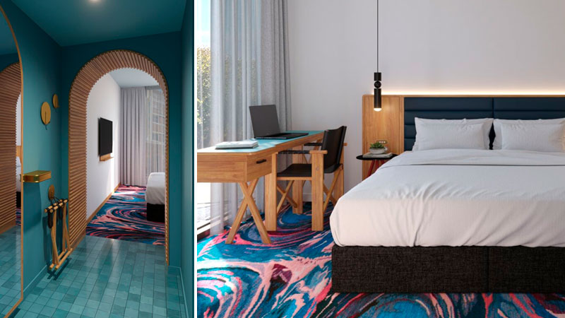 That concept extends into the guestrooms, which are divided into two character-driven archetypes—the ‘Dreamer’ and the ‘Renegade’—each expressed through different colour palettes, furniture selections and spatial moods.