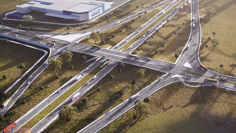 It neighbours a number of Melbourne’s key arterials including the Hume Freeway via the new O’Herns Road diamond interchange, Tullamarine Freeway, Western Ring Road and City Link.