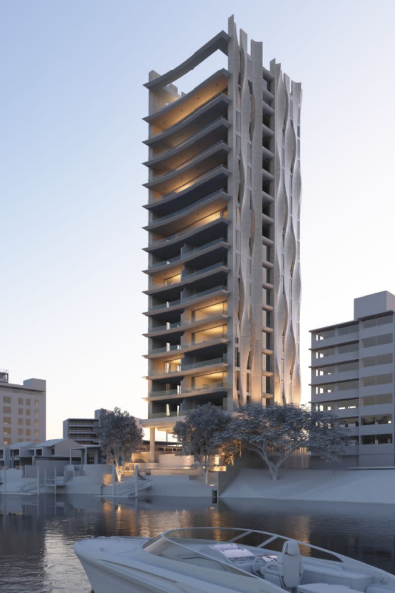 According to the application, the proposed tower’s architecture draws inspiration from the flow of the Brisbane River, expressed through sculpted precast concrete, sandstone textures and curved facades designed to soften its form.
