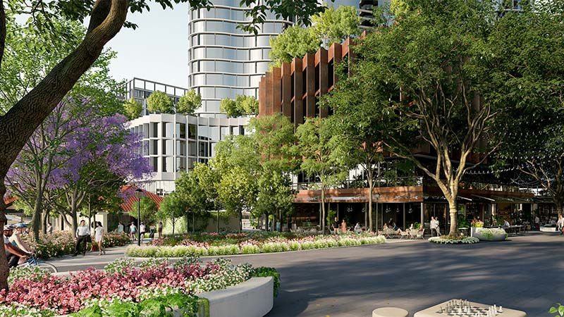 DKO, Nelson + Koo and FK Australia have designed the precinct, with landscape architecture by Tract.