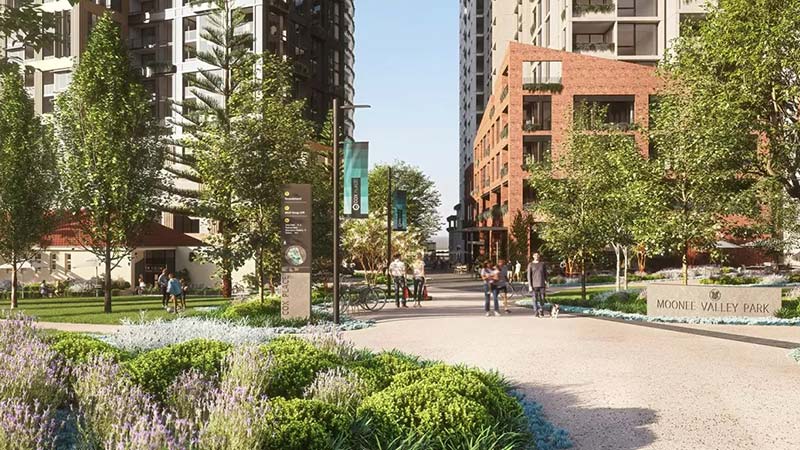 The development is part of the $3-billion transformation of Moonee Valley Racecourse, which began with Tote Park’s completion in 2020.