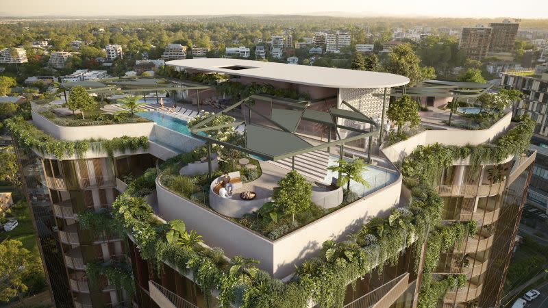 Ellivo Architects described the project as an “urban oasis that blends short term accommodation with residential living”.