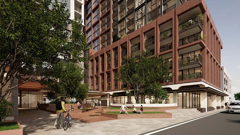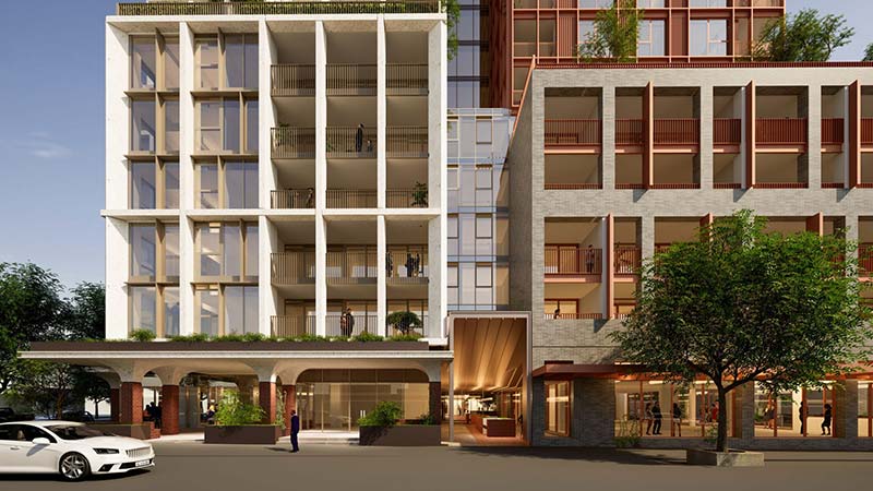 Cox Architecture designed the project, which also includes five ground-floor retail tenancies totalling 1193sq m and a 255sq m community space. A non-profit organisation will use the community space rent-free for 10 years.