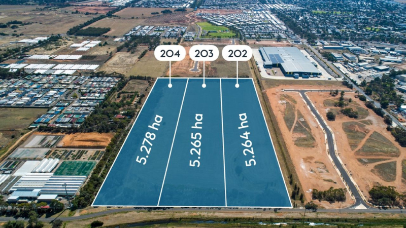 Zoned for strategic employment, the allotments at 202, 203 and 204 Bellchambers Road are each more than 5ha in size and being offered individually or as one sale.