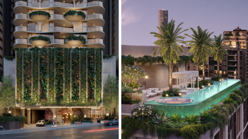 Renderings of Sherpa's debut Brisbane residential tower under construction at 21-23 Cordelia Street, South Brisbane.