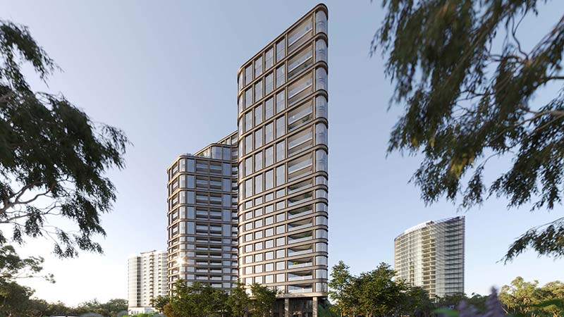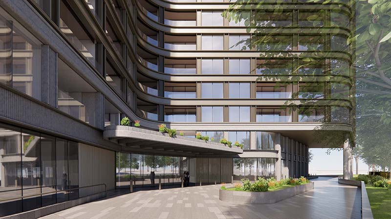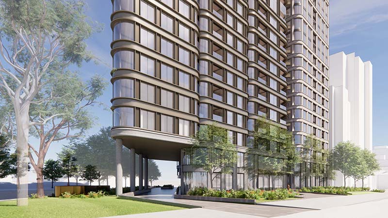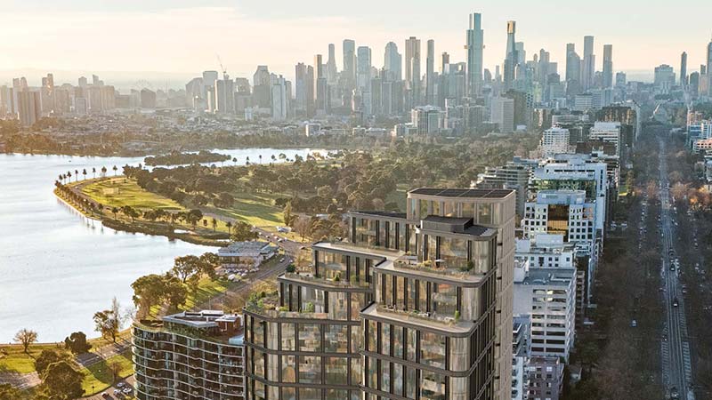 The boulevard-facing elevation would “mirror the rhythm and scale of heritage mansions”, while the park-facing side would feature sculpted glass forms opening toward Albert Park Lake and Port Phillip Bay.