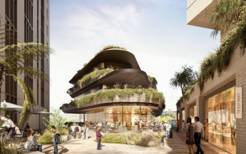 A render of the ground plane at the Central Coast Quarter proposal in Gosford, led by Urban Property Group.