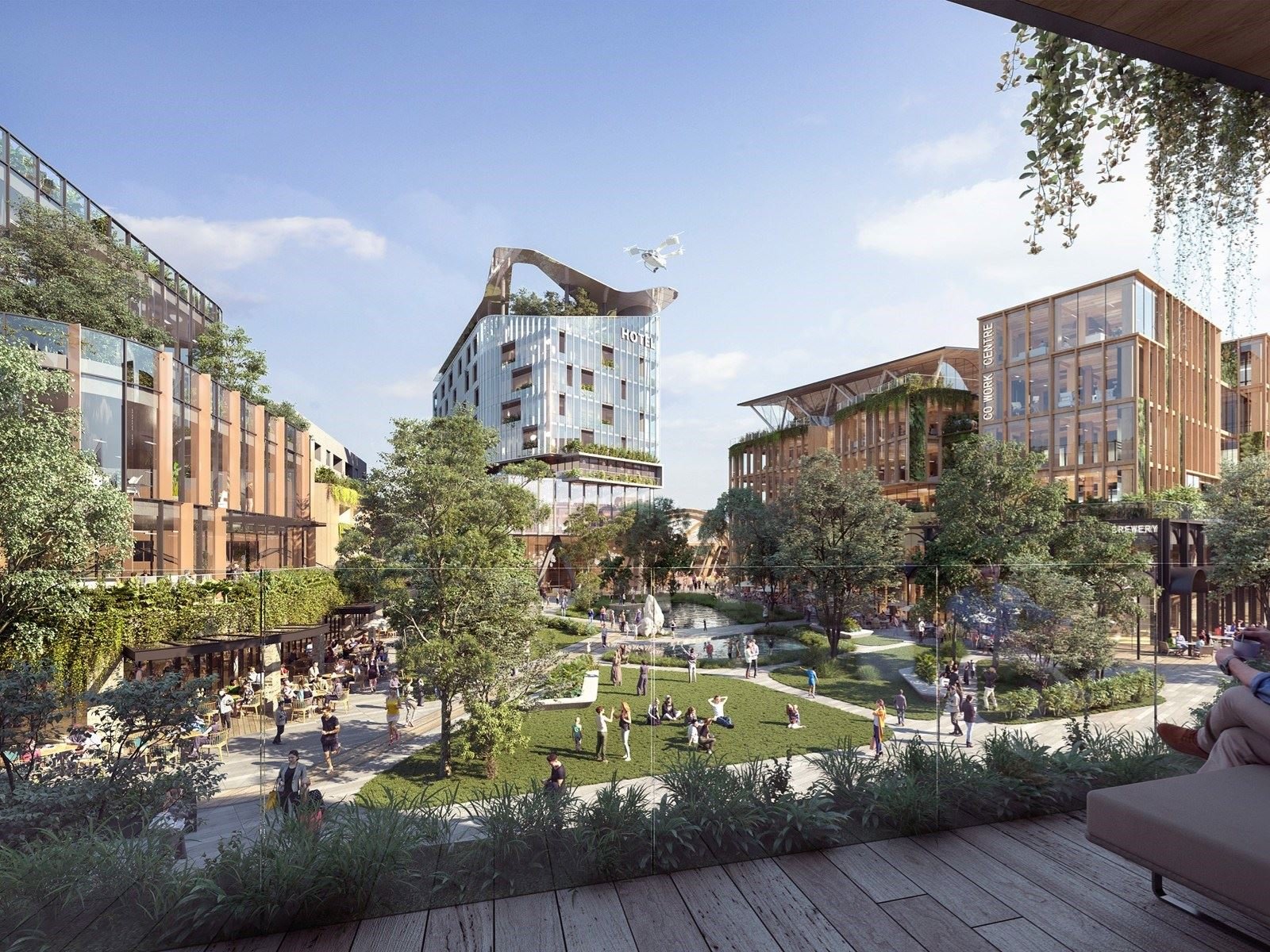 The site forms part of the approved Rockbank North Precinct Structure Plan, which designates it as a future activity centre featuring retail, dining, entertainment and civic spaces (concept images below).